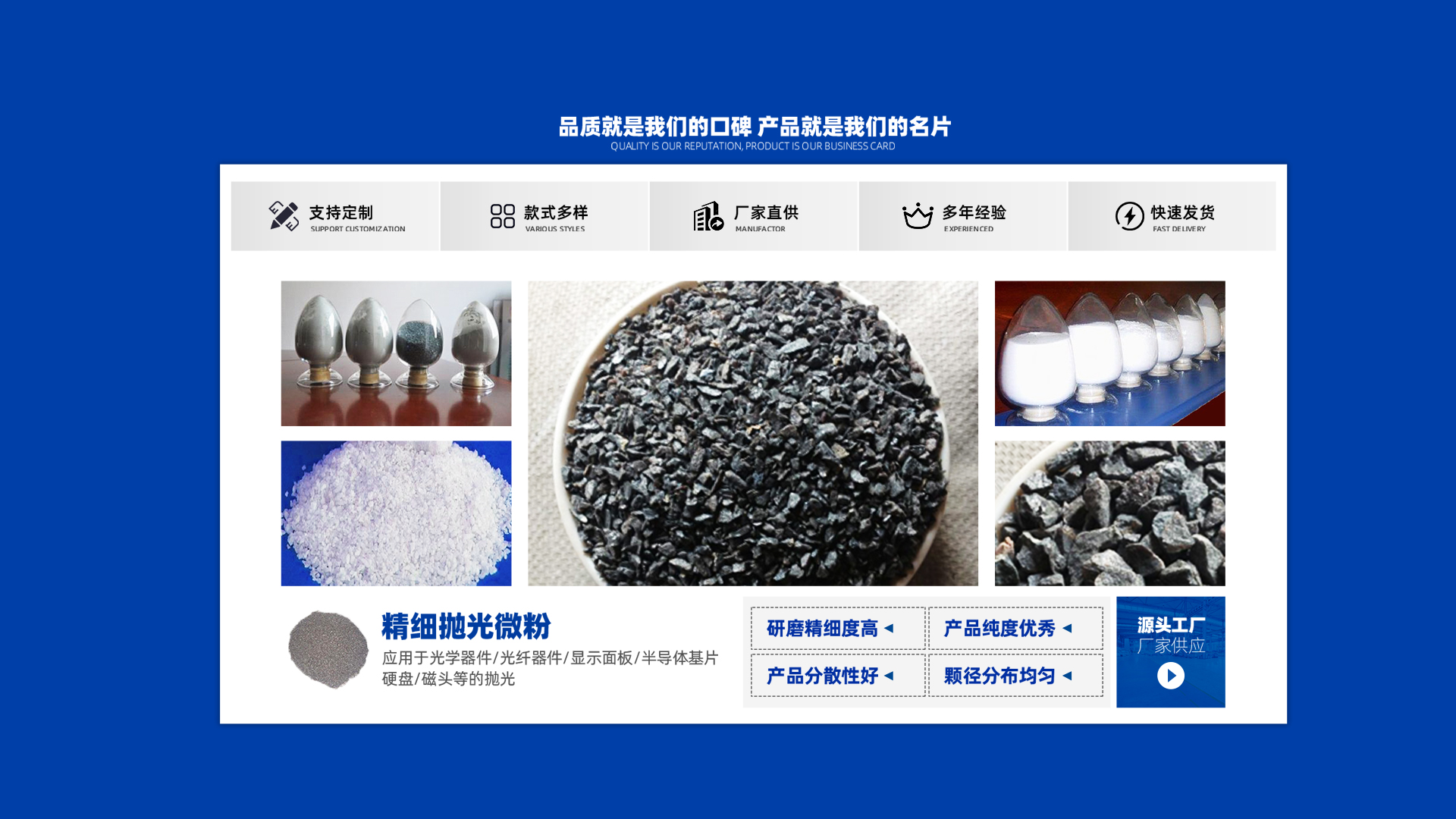 18年來(lái),雙岳磨料經(jīng)過(guò)不斷發(fā)展和技術(shù)的積累,凝聚了 一批經(jīng)驗(yàn)豐富,素質(zhì)精良的專業(yè)人才。我們始終堅(jiān)持“客 戶為本”原則發(fā)展,以誠(chéng)信經(jīng)營(yíng)為基礎(chǔ),以服務(wù)滿意為保 證,歡迎新老客戶來(lái)廠洽談業(yè)務(wù)。